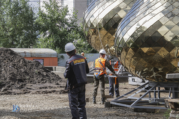 В Улан-Удэ сегодня установили часть куполов на строящийся Успенский кафедральный собор в парке имени Орешкова.