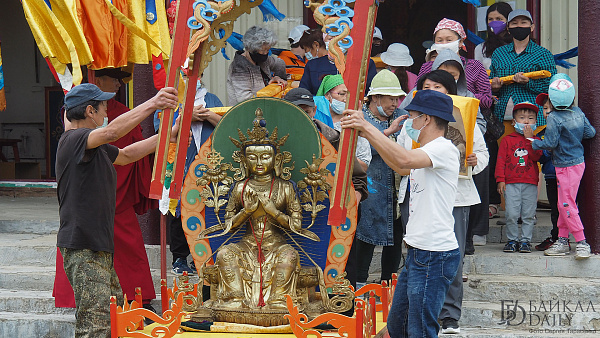 В этот день ламы совершают торжественный обход колесницы, на которой восседает Будда будущего Майтрея, вокруг дацана. В колесницу запрягают коня-аргамака, окрашенного в зелёный цвет, что символизирует счастье.