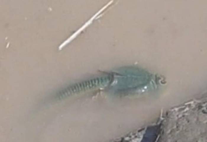 - Хочу поделиться с вами необычной встречей. Сегодня утром я случайно заметила доисторических животных в луже возле дома. Это щитни. Родственники динозавров, в некоторых регионах являются краснокнижными животными, - подписала видео их автор.