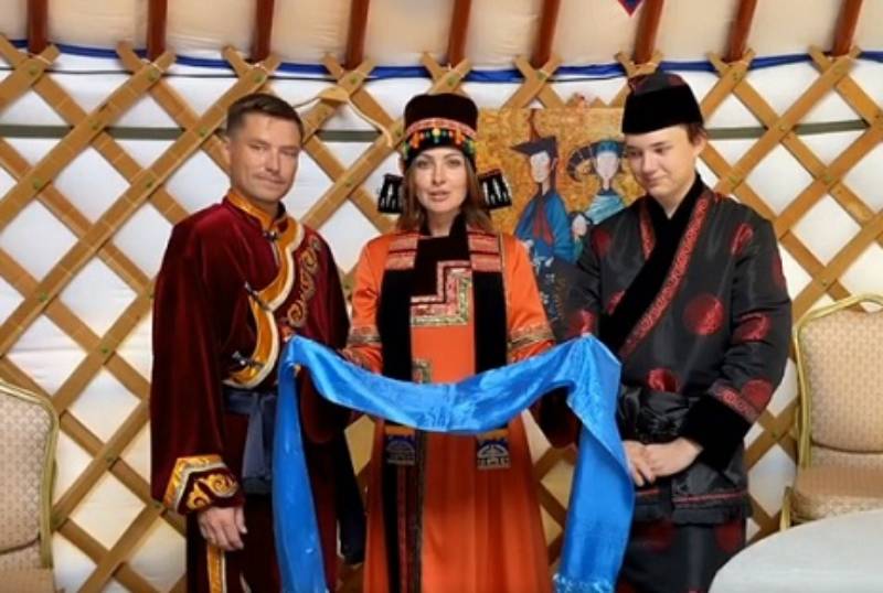 - Дорогие друзья! Сайн байна! Мы на благодатной бурятской земле в роскошной юрте, в этнопарке «Золотая орда». Узнали немножко про историю, традиции, попели, научились танцевать хоровод и, вот, я в костюме невесты. Два хлопца со мной в национальных костюмах. Желаем вам всего самого замечательного. Берегите друг друга. И, конечно же, здоровья вам. Приезжайте сюда к нам. Мы отсюда отправимся прямо на озеро Байкал, и оттуда будем рассказывать, как всё у нас происходит, - поведала на записи актриса, облачённая в бурятский костюм.