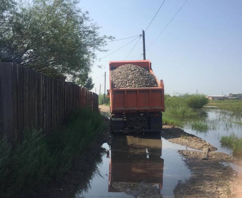 Для предотвращения затопления ведутся работы по отсыпке насыпи по границе реки до слияния с Селенгой высотой 1,6 м., шириной 4,4 м. Для работы привлечены два подрядчика. С материалом помогает компания «Леруа Мерлен». Строители вывозят грунт с территории их стройки. На сегодня в СНТ «Сибиряк» отсыпано 2215 тонн супеси, это 133 машин по 17 куб.