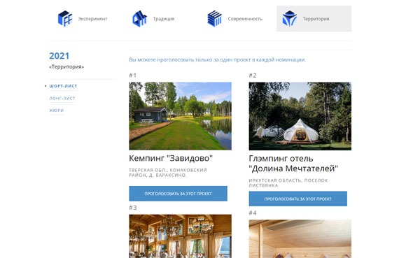 На сайте совместного проекта Ростуризма и общероссийской архитектурной премии «АрхиWood» уже началось народное голосование. Победителей профессиональное жюри выберет в сентябре. В этом же месяце состоится церемония вручения премии.