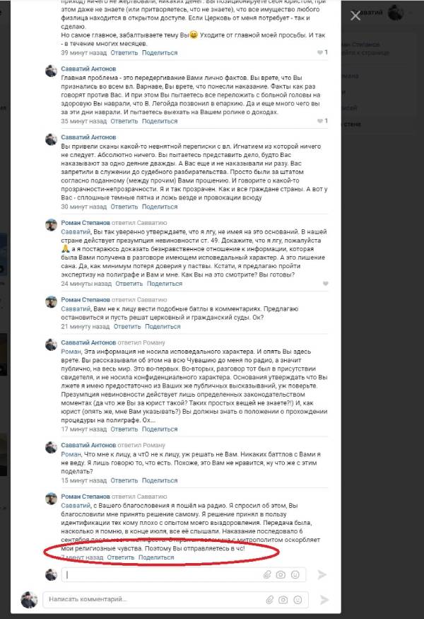 Также в соцсети разгорелся спор между Романом Степановым и митрополитом, итогом стало то, что первый добавил второго в «чёрный список».