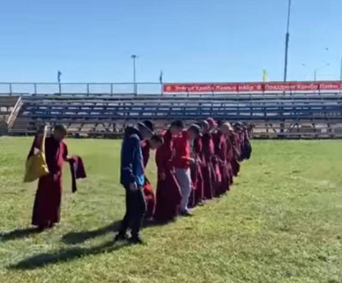 Забавным видео 10 сентября поделился в социальной сети Пандито Хамбо Лама Дамба Аюшеев. На записи хувараки специально протаптывают стадион, чтобы облегчить выступление борцов на соревнованиях.