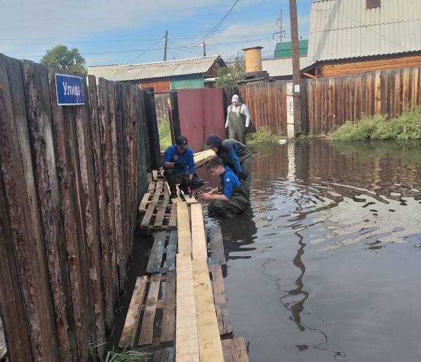В СНТ «Сибиряк» в Улан-Удэ студенты четвёртого курса кафедры «Промышленная экология и защита в ЧС» ВСГУТУ уложили деревянные поддоны в местах скопления воды.