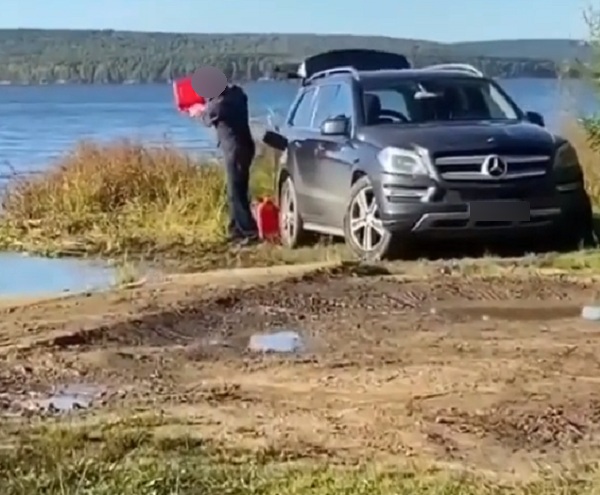 Очевидец не только заснял недобросовестного гражданина с канистрами, но и подошёл к нему, возмутился тем, что мужчина сливает бензин в озеро. Однако нарушитель потребовал убрать камеру, и запись на этом обрывается. Впрочем, житель Бурятии успел зафиксировать госномер машины мужчины.