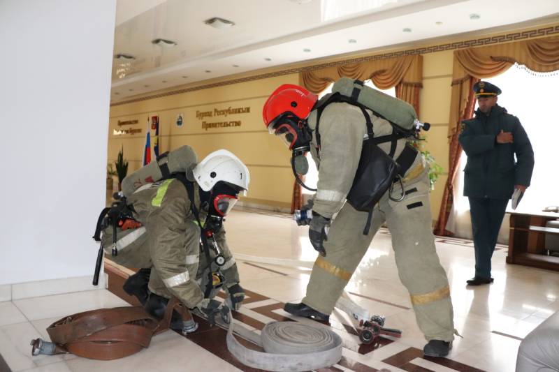 По тактическому замыслу, возгорание произошло в конференц-зале правительства на втором этаже. Сразу же сработала пожарная сигнализация и система оповещения о пожаре. На место были направлены пожарные по повышенному рангу вызова. К моменту прибытия первого пожарно-спасательного подразделения администрация эвакуировала людей из здания, за исключением троих человек, оставшихся в задымленной зоне.