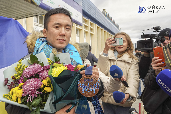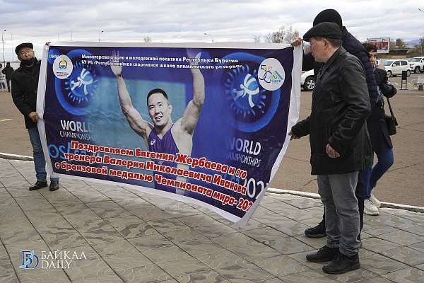 Сегодня, 9 октября, в аэропорту Улан-Удэ торжественно встречали бурятского борца Евгения Жербаева, завоевавшего на чемпионате мира в Норвегии бронзовую медаль. Евгений прилетел московским рейсом. Его встречали близкие люди, представители федерации борьбы, Центра спортивной подготовки и др. По традиции Жербаеву и его тренеру Валерию Иванову поднесли хадаки. В честь призёра звучали многократные «Ура».