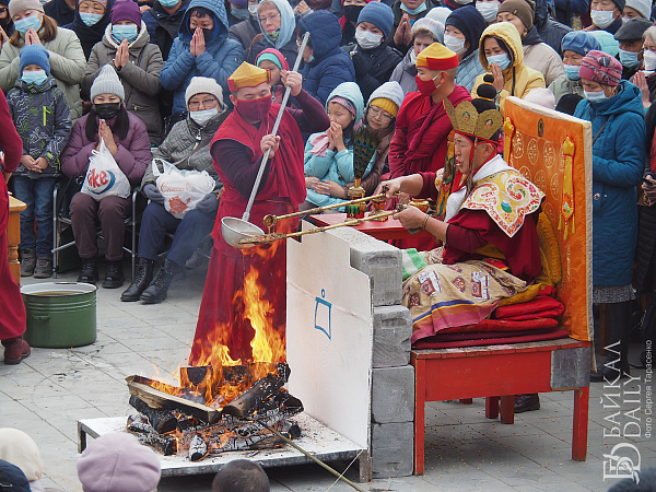 9 октября в Дуйнхор дугане Улан-Удэнского дацана на Верхней Берёзовке состоялся большой буддийский молебен – Жинсриг. Это огненное подношение божеству Идаму Ямантаке (Ваджрабхарайве).