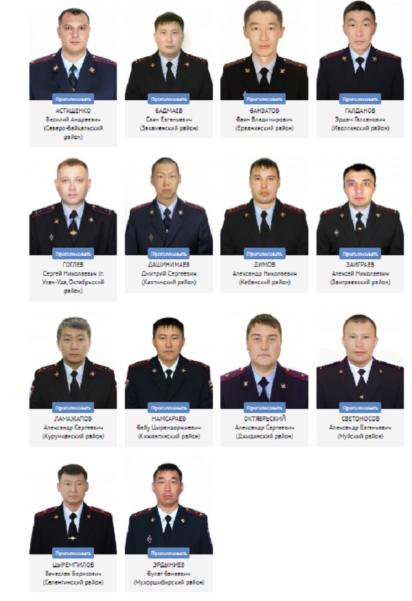 Продолжается голосование за лучшего участкового уполномоченного полиции Бурятии, который представит республику в федеральном этапе конкурса и вместе с претендентами из других регионов поборется за звание Народного участкового.