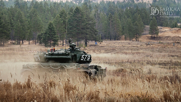 Следом экипажи танков Т-72Б и БМП выполнили показательные заезды с боевой стрельбой по различным мишеням.