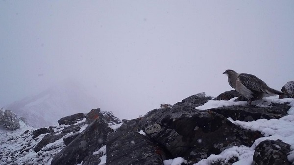Особь алтайского улара отметилась на фотоловушке в Тункинском национальном парке.