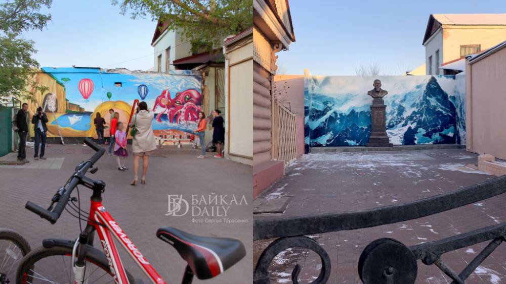 - Самый последний рисунок с фигурами в платках внезапно срифмовался с уже установленным, но ещё накрытым тканью бюстом врача Бадмаева. Всё вместе это сложилось в странную сюрреалистическую композицию. Дальнейшее облагораживание дворика вполне ожидаемо свелось к стандартному «убить всё живое»: деревья спилить, стену закрасить. Баннерная печать победила. Чисто, ровно, красиво, - поделился фотокорреспондент «Байкал-Daily» Сергея Тарасенко.