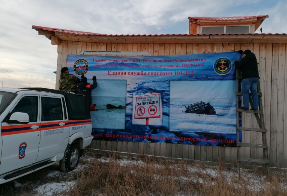 В Бурятии активно устанавливают запрещающие знаки и развешивают информационные баннеры с предупреждением о тонком льде. Так, недавно были размещены баннеры на автодороге Гусиноозёрск - Улан-Удэ около села Тохой, а также при въезде на озеро Щучье.