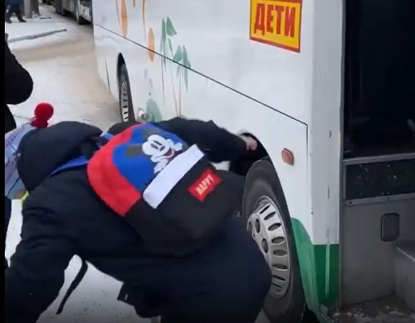 В минутном видео показано, как из остановившегося автобуса с надписью «Дети» буквально выкидывают мальчика с рюкзаком. Водитель выражается в адрес ребёнка нецензурными словами, пинает ногами, таскает за шиворот. Такое поведение «водитель» объясняет тем, что школьник не сделал домашнюю работу.