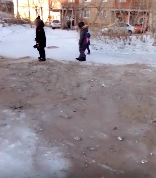 В военном городке на станции Дивизионная в Улан-Удэ во дворе образовалась стихийная горка, с которой катались дети. Однако скользкий снежный склон представлял опасность - катающиеся с горок дети могли попасть под колёса автомобиля.