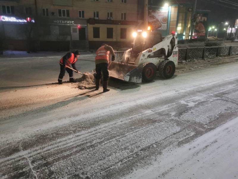 Всю ночь в городе продолжалась уборка города от снега. В первую очередь, силы были направлены на подсыпку наиболее опасных участков, чтобы предотвратить утренние пробки и аварии. Это остановочные карманы, крутые спуски и подъёмы, перекрёстки, а также пешеходные дорожки.