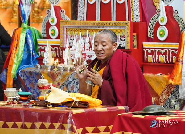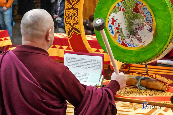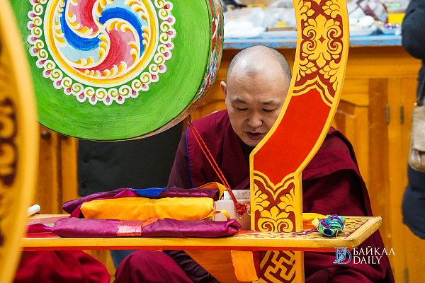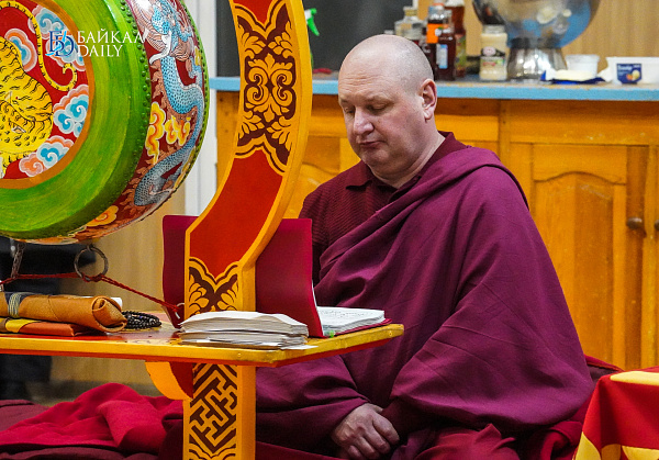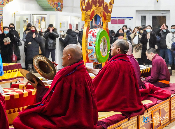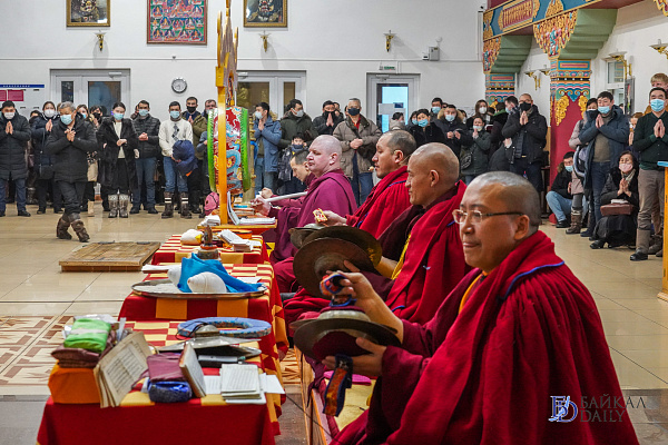 В 18 часов ламы начали читать специальный молебен Дугжууба, после чего развели ритуальный костер.