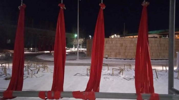 Накануне в местном паблике selfie_gsk_03 появилась фотография красных гамаков в гусиноозёрском сквере. Жители города задались вопросом, зачем в сквере «Юность» повесили такие красные ткани?