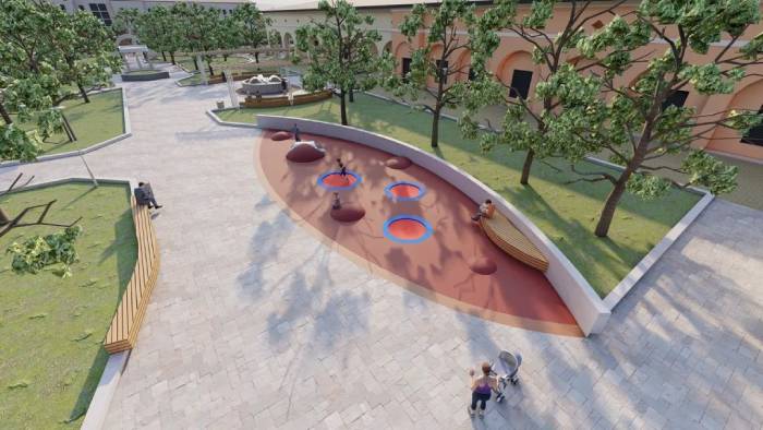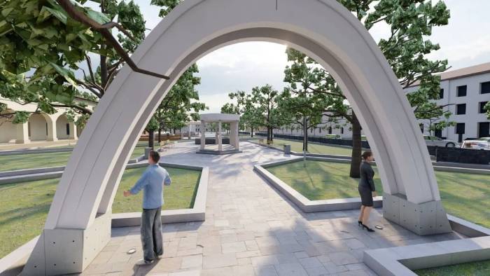 Здесь же появится «Арка влюблённых» с уникальной акустикой: если двое по разные стороны арки будут говорить шёпотом во внутренние ниши арки, то они отчётливо услышат друг друга, при этом их разговор не услышат окружающие.