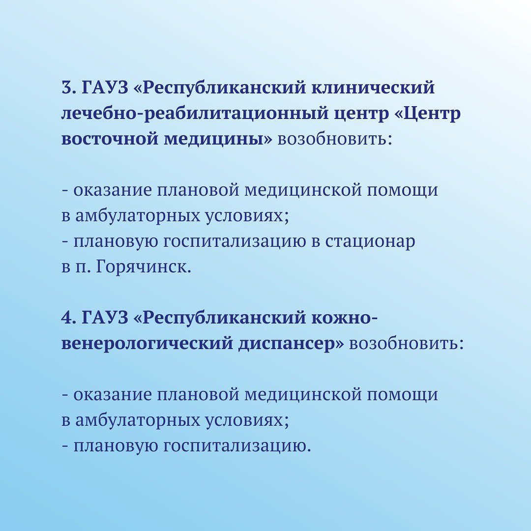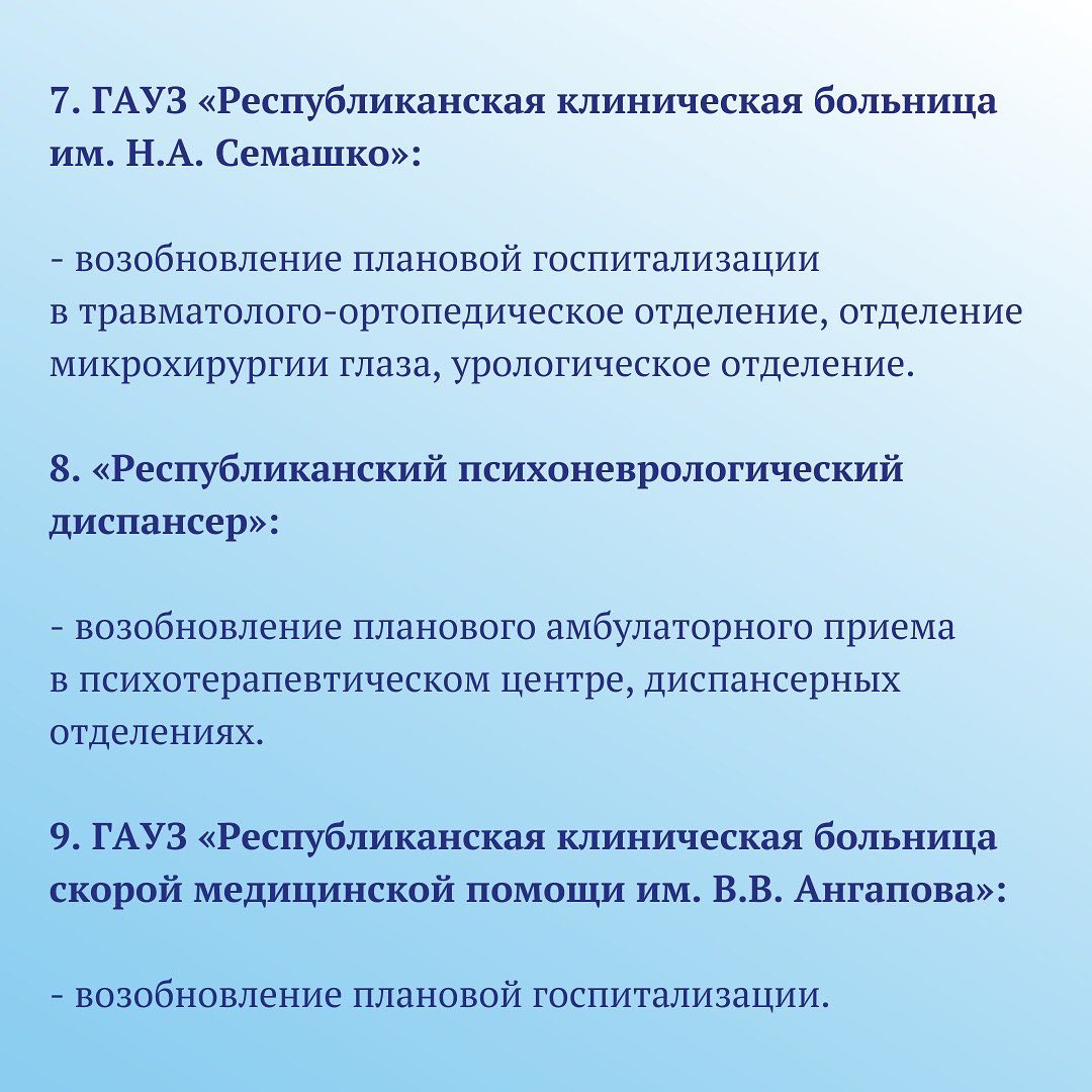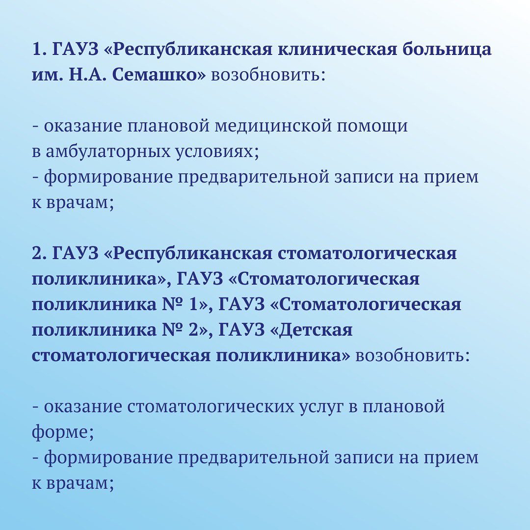 На странице министерства в соцсети опубликовали список медорганизаций, которые возобновили плановые приёмы и другие услуги.