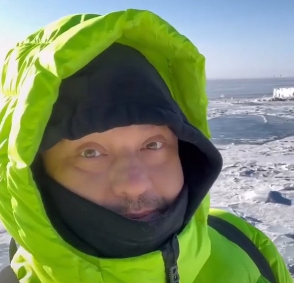 Лидера группы «Руки вверх» удивила морозная погода. На Байкале около -32 градусов и холодный ветер. Путешественники укутались в тёплую одежду, голову согревают вязаные балаклавы. Дочь певца надела валенки.