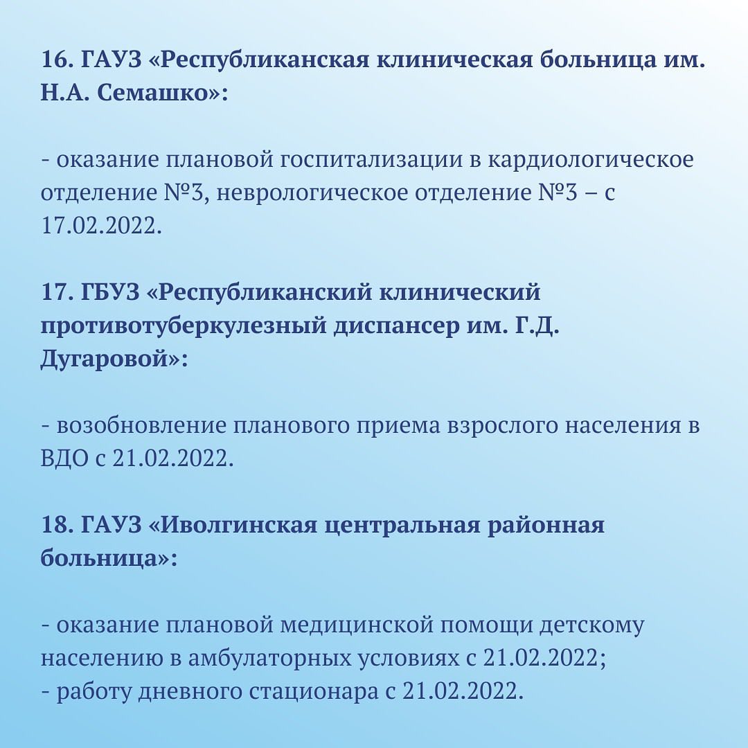 Как сообщал «Байкал-Daily», плановый приём пациентов был приостановлен с 27 января, причиной тому стали введённые ограничения из-за роста заболеваемости коронавирусом. В начале этой недели часть ограничений сняли, а ежесуточный прирост заболеваемости стал постепенно снижаться.