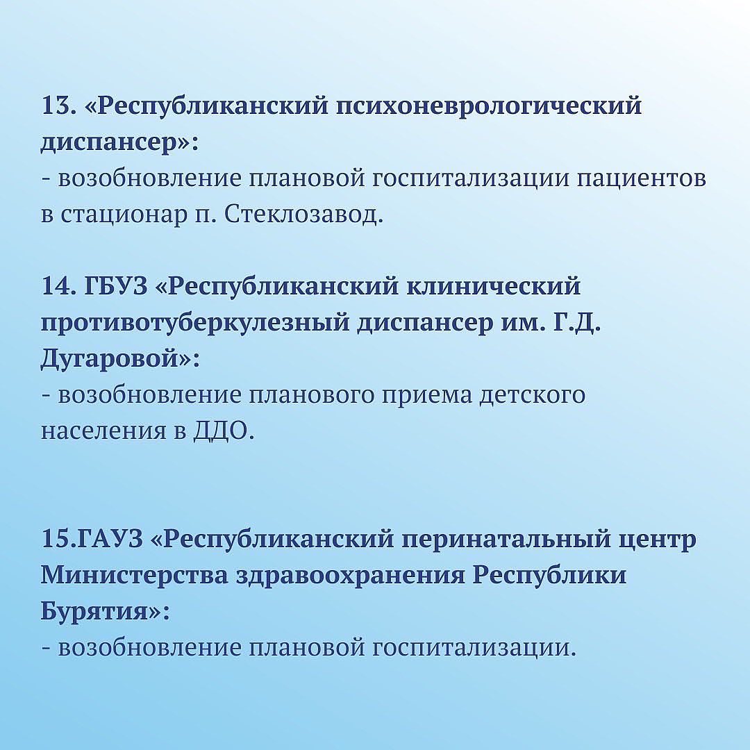 Как сообщал «Байкал-Daily», на днях министерство опубликовало список медицинских организаций, который возобновили плановый приём. Список пополнился ещё на три организации.