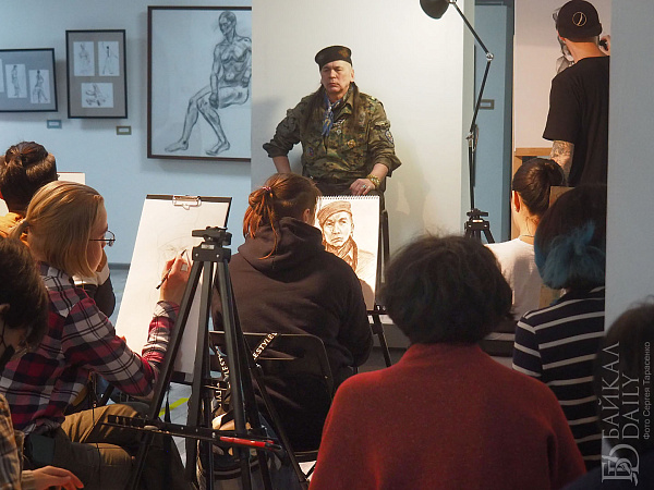 10 марта в центре современного искусства «Залуу» прошёл очередной «Портретный четверг». Куратором рисования углём с натуры стал стрит-арт художник из Иркутска Василий Каптырев, а натурщиком — Анатолий Сахиров, известный в Бурятии коллекционер.