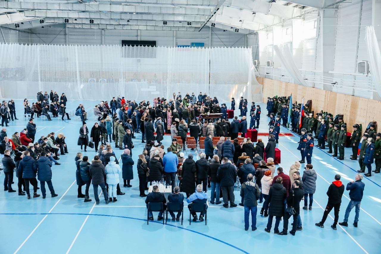 На церемонию прощания собрались родные, сослуживцы, друзья, одноклассники.