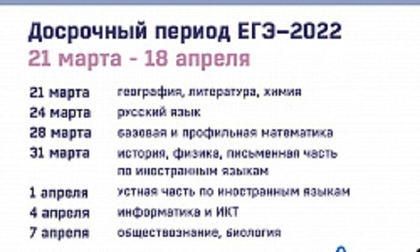 21 марта в Бурятии стартовал досрочный период проведения единого государственного экзамена (ЕГЭ) в 2022 году. В Улан-Удэ пунктом проведения экзамена определена школа №49, сообщается на сайте минобразования Бурятии.