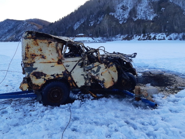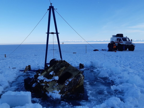 - 24 марта при помощи глубоководного робота и ворота спасатели подняли автомобиль на лёд. Сегодня автомобиль готовится к транспортировке для последующей утилизации, - сообщили в пресс-службе Байкальского поисково-спасательного отряда.