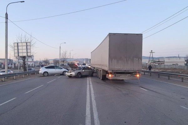 Около 18 часов 45-летний водитель грузового автомобиля Scania при перестроении столкнулся с машиной Toyota Carina. После чего Toyota Carina выехала на полосу встречного движения и столкнулась в свою очередь с автомобилем Toyota Prius.