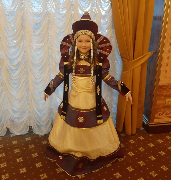 На сцене Виолетта продемонстрировала вечерний наряд, деловой стиль и национальный костюм. В творческом конкурсе девочка рассказала стихотворение о Байкале и исполнила национальный танец.