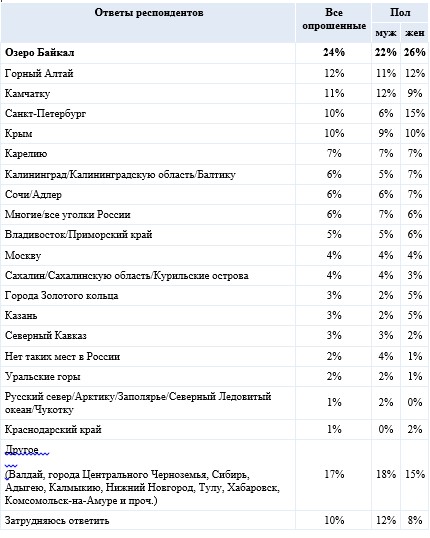 Вопрос: «Какие места в России вы мечтаете посетить?»