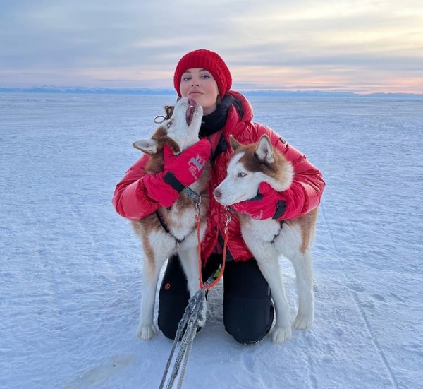 Ведущая успела познакомиться с сибирскими хаски. Эти четвероногие симпатяги не оставили Андрееву равнодушной.