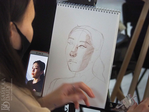 Художник-живописец Аржан Ютеев (Алтай) провёл мастер-класс «Портрет мягким графическим материалом (сепия/сангина)».