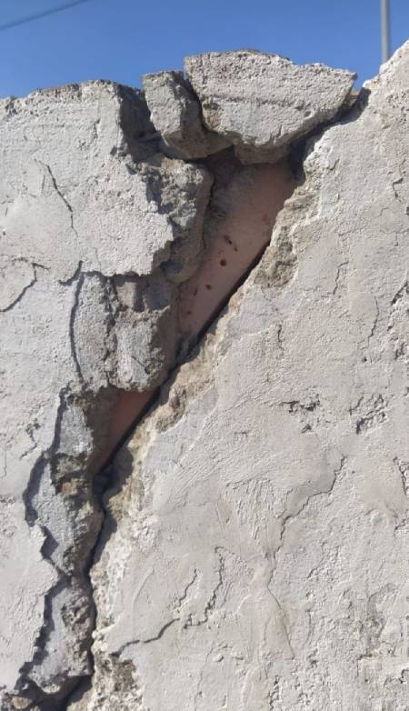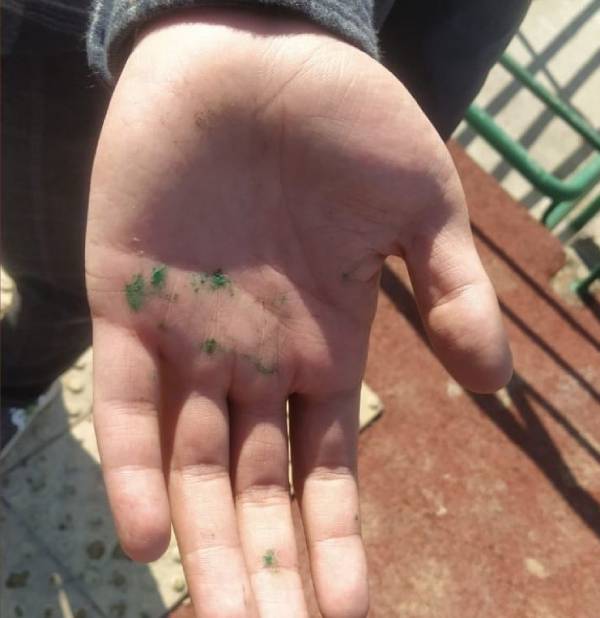 Краска на ограждении сильно мажет. Эксперты предположили, что её могли нанести недавно, либо покраска происходила зимой, что привело к порче оборудования. Кроме того, ограждение местами и вовсе не докрашено. На перилах у лестниц нет ни одной заглушки, которые предохраняют металлические изделия от проникновения осадков. Бетонная отмостка всей площадки объекта крошится, есть несколько трещин. А ведь площадку ещё даже не используют для ежедневных занятий.