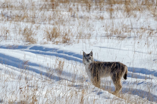Рысь не просто пробегала мимо, она заметила людей и даже немного «попозировала» на камеру. Она остановилась и уверенно посмотрела в объектив, позволив себя запечатлеть.
