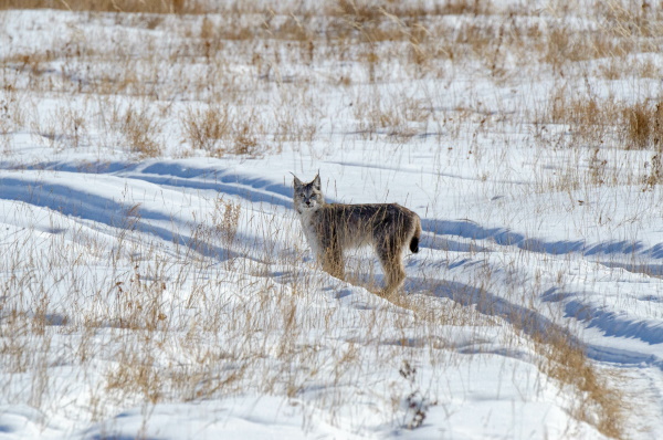 Рысь не просто пробегала мимо, она заметила людей и даже немного «попозировала» на камеру. Она остановилась и уверенно посмотрела в объектив, позволив себя запечатлеть.