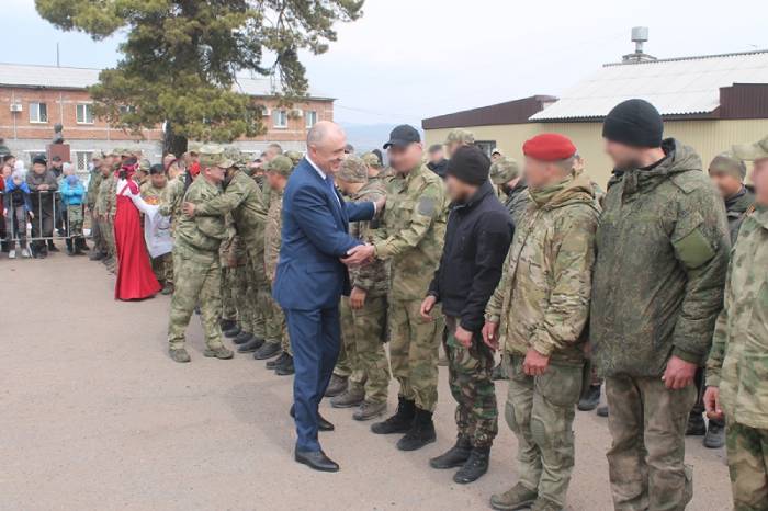 Прибывших росгвардейцев встречали руководители правительства Бурятии, территориального управления Росгвардии, сослуживцы, родные, друзья и ветераны.