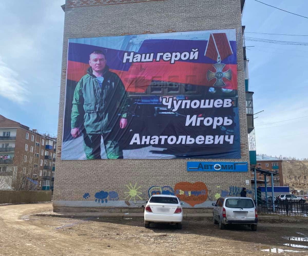 - В знак памяти и гордости за героизм нашего земляка Игоря Анатольевича Чупошева в Закаменске появился баннер с его портретом, - сообщили в администрации Закаменска.