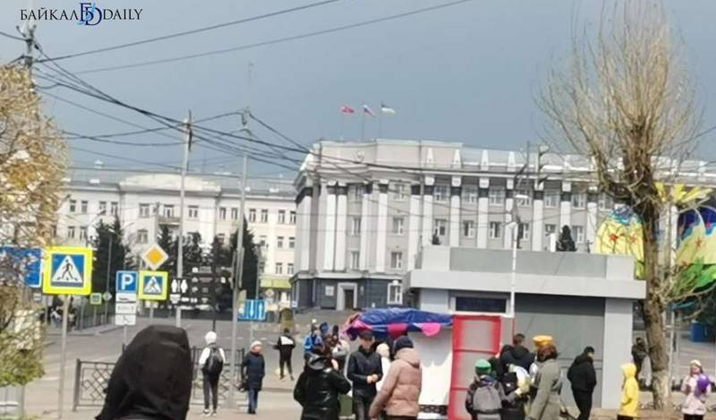 По всей видимости, флаги установили в ночь с 8 на 9 мая. Копии знаменитого Знамени Победы появились рядом с государственным флагом России и флагом Бурятии.