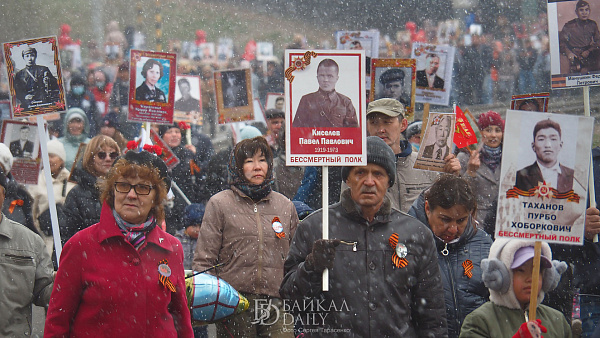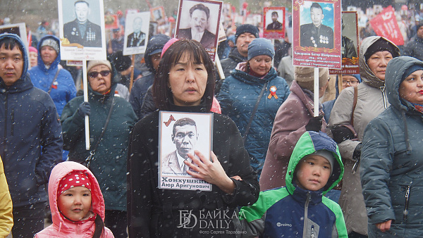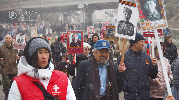 - Мы идём с портретом дедушки мужа. Он был пулемётчиком, получил ранение на войне. Дожил до 2006 года. С самого начала акции участвуем каждый год, только в пандемию не ходили. Но участвовали в онлайн-акции, в Российском музее в электронной книге тоже есть информация о нашем дедушке, - поделилась жительница Улан-Удэ Ольга Брылева.