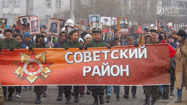 Улан-удэнцы c портретами воевавших родственников начали движение в 11:00 с улицы Ранжурова - с площадки перед Национальной библиотекой за Театральной площадью. Шествие прошло по улице Сухэ-Батора, вслед за прохождением военной техники - по площади Советов, и далее, по улицам Ербанова, Коммунистической до Мемориала Победы и площади Революции.
