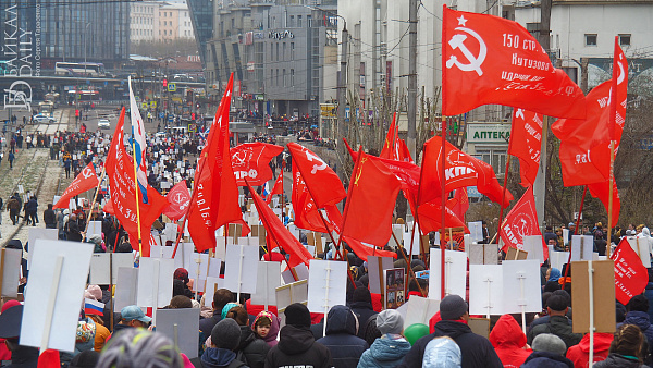 Председатель Улан-Удэнского горсовета депутатов Чимит Бальжинимаев шёл с портретом дедушки.