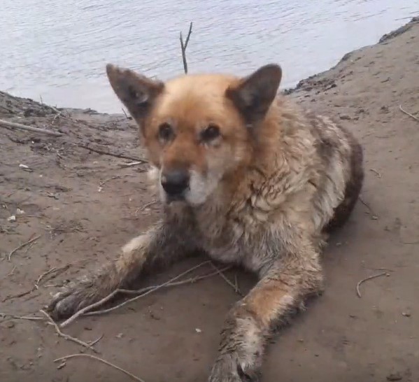 На Богородском острове в Улан-Удэ мужчина с ребёнком вытащили большую собаку из реки во время рыбалки. Позже выяснилось, что у несчастного пса полностью не функционируют задние лапки.