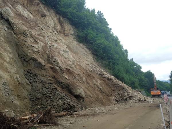 Работы по устранению последствий продолжаются. В связи с движением грунта, в целях обеспечения безопасности, дорожники вынуждены периодически приостанавливать работы по расчистке.