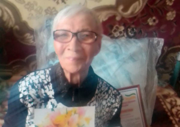 В юбилейный день отдел социальной защиты населения по Заиграевскому району и совет ветеранов поздравили именинницу с юбилеем, вручили поздравительную открытку от главы Бурятии и свидетельство о предоставлении единовременной выплаты участнику трудового фронта, подарили подарок и пожелали крепкого здоровья, бодрости духа на долгие, долгие годы.