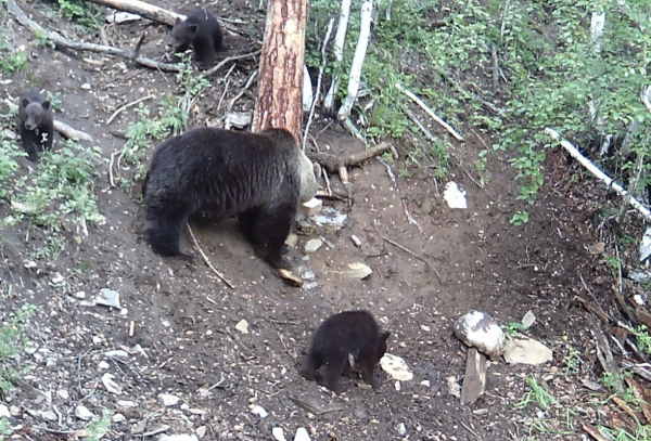 В кадры попали медведица с тремя детёнышами, косуля и олень. Животные прогуливаются по лесам, осматривая территории.